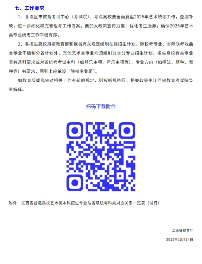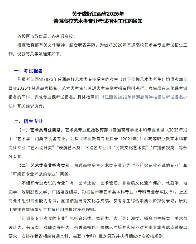 当前位置: 首页 艺考资讯 官方发布!2026届江西省联考各专业考试时间与地点已定!(文章附件见文末)