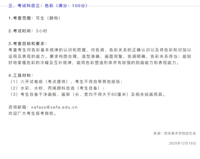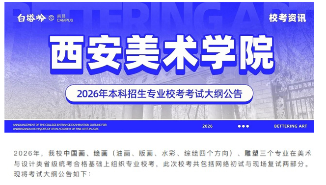 当前位置: 首页 艺考资讯 【西安美术学院】2026年本科招生专业校考考试大纲公告